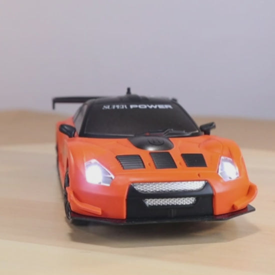 [High-Speed Drifting Car]: 1: 24 scale racing car, remote control drift car can go forward, backward, turn left and right, and other full-scale synchronous control functions. The remote control is very easy to simple operation. Power hard shell is not easily damaged by impact during driving. The speed can reach up to 15KM/H, which provides you with a faster high-speed racing experience. The front of the car has cool lights, and night driving is more attractive.